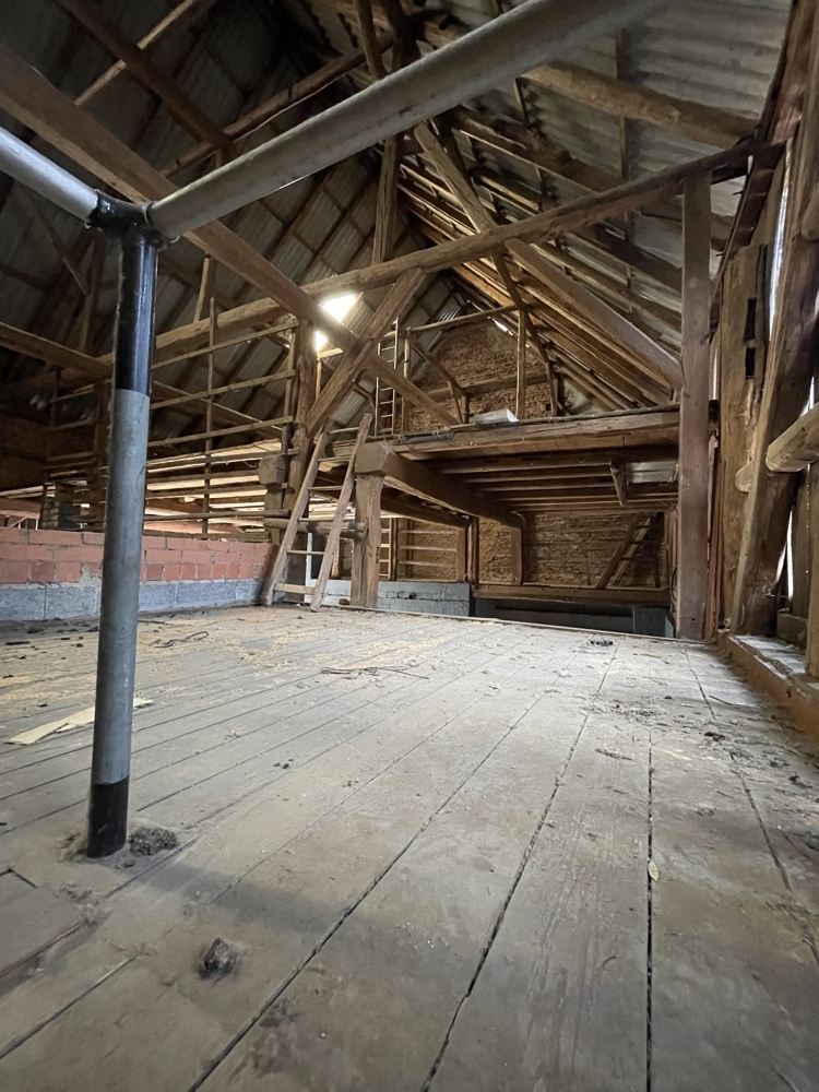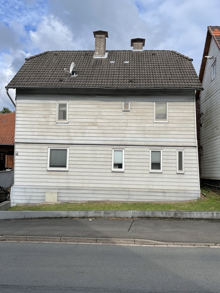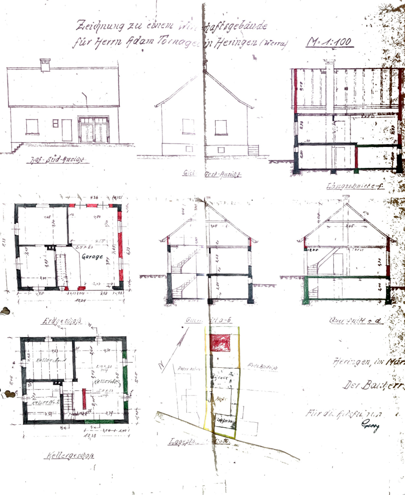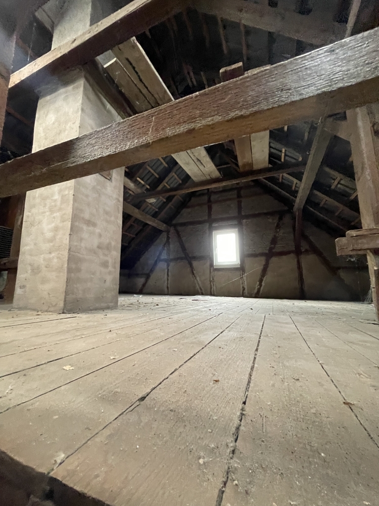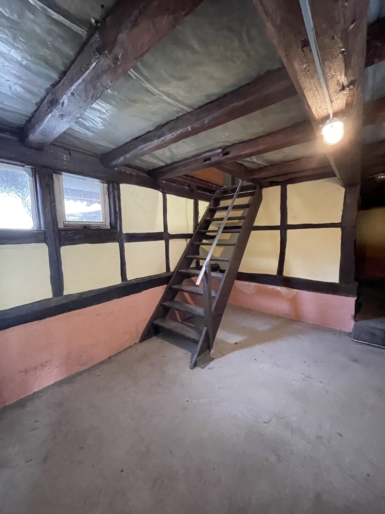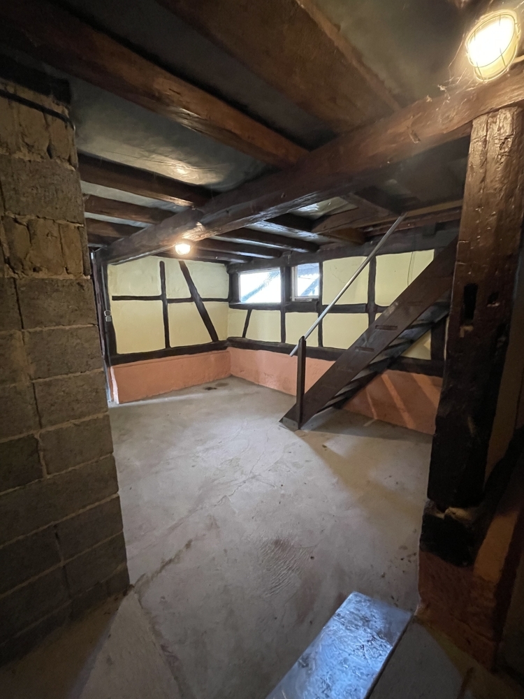 Gebäude 1:Bj.ca1910, Fachwerk, sanierungsbedürftig , EG und OG ( voll unterkellert). Ca 80m² nutzbare Fläche, derzeit nicht ausgebaut.