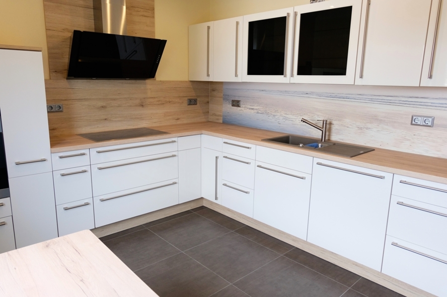 Die Erdgeschosswohnung ist teilweise renoviert: Küche und Bad sind bereits fertiggestellt, während die übrigen Räume noch einige Restarbeiten erfordern. Dies bietet die Möglichkeit, die Räume ganz nach eigenen Vorstellungen zu gestalten.