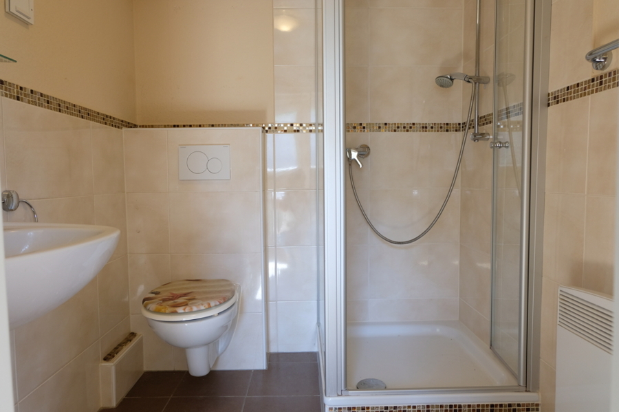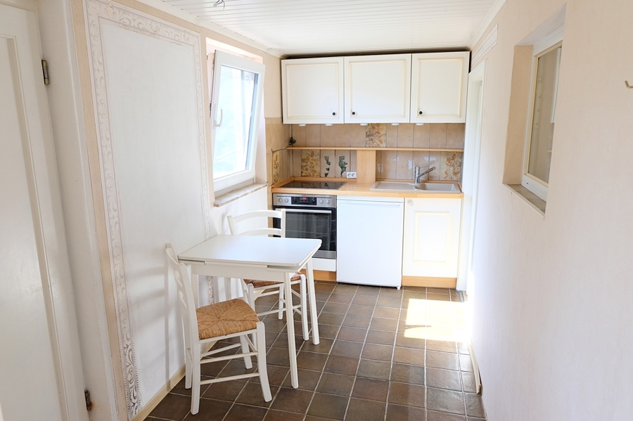 Auf derselben Ebene stehen außerdem ein Schlafzimmer, ein helles Bad sowie eine funktionale Küche zur Verfügung, die durch ein angrenzendes Gästezimmer ergänzt wird. Garderobe und separates WC fügen sich harmonisch in die Raumaufteilung ein und runden das Wohnen auf dieser Etage ab.