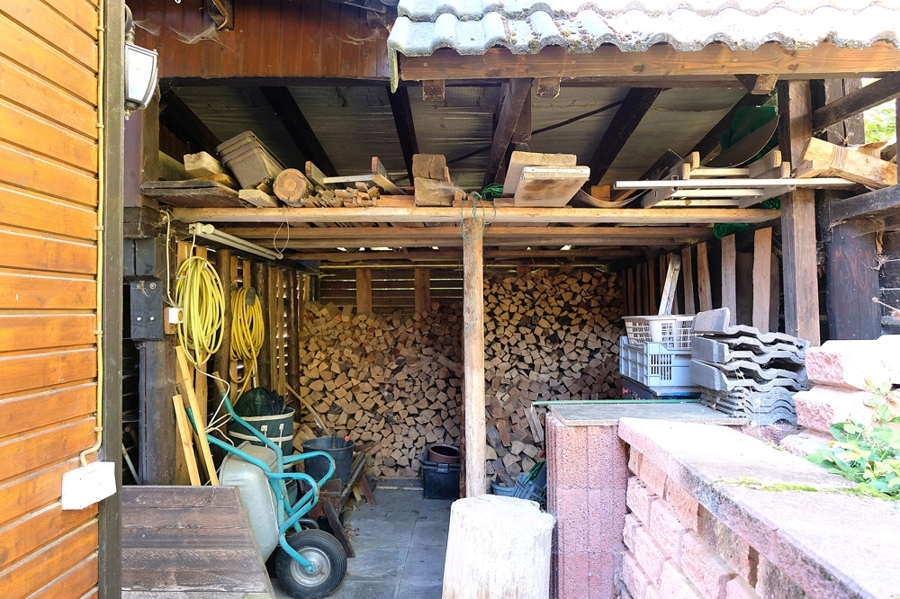 Auch im Außenbereich überzeugt die Immobilie mit durchdachter Ausstattung: Ein Carport, ein Holzschuppen sowie ein Gartenhaus bieten reichlich Platz für ein Fahrzeug, Werkzeuge und Freizeitgestaltung.