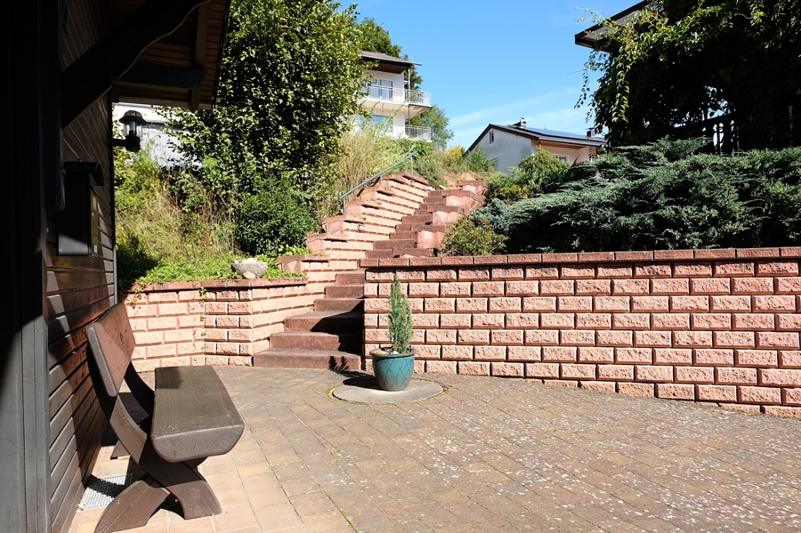 Der Garten ist terrassenförmig angelegt und passt sich harmonisch der Hanglage an.
